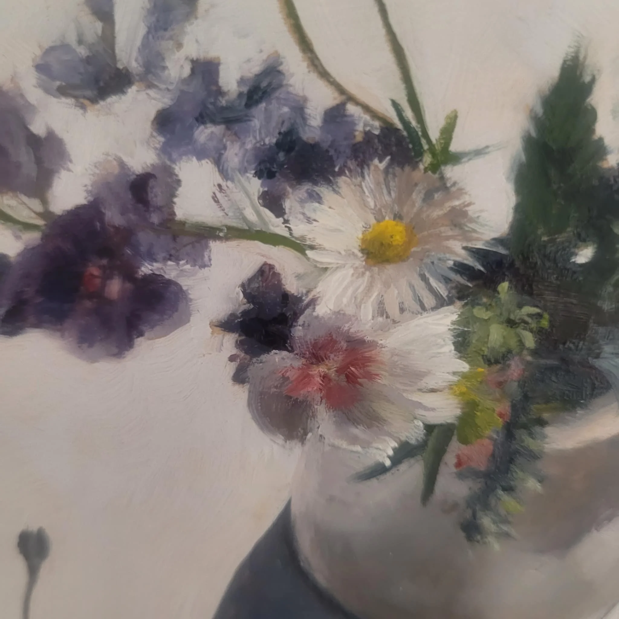 I’m busy painting at my kitchen table in our new home, working on 9-10 pieces that will be exhibited in a VERY special group still life exhibition in September. If you appreciate my still life work, this is not one to miss!